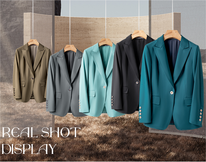 女式单排扣西装有着简约大方的外观设计。相比于传统的双排扣西装,单排扣的设计更加简洁,使得整体穿着更为清爽。同时,西装的修身剪裁能够展现出女性的优雅曲线,使得穿着者更加显瘦挺拔。无论是搭配裤装还是裙装,单排扣西装都能够带来一种气质的提升。